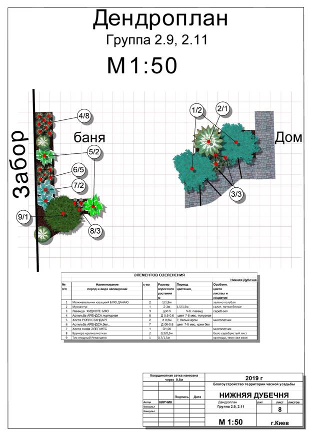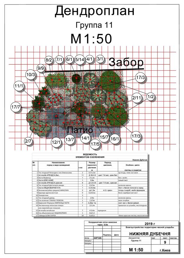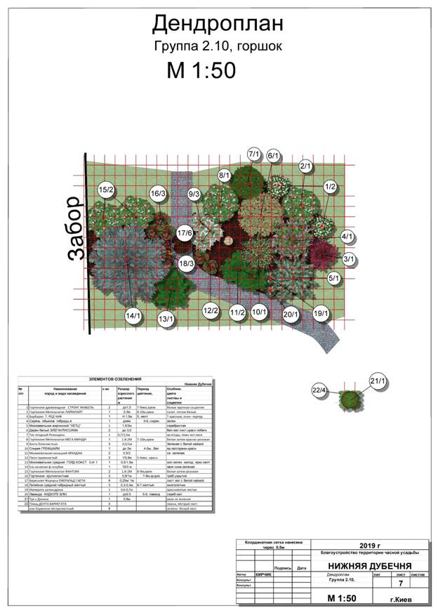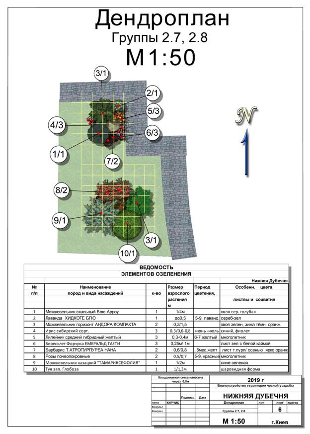 В наш стандартный ландшафтный проект входят : Генплан; Дендроплан (общий), Чертёж вертикальной планировки; Разбивочный чертёж; Дендропланы отдельных элементов озеленения ( клумб миксбордеров и т.д.) ; Сметная документация; Рекомендации по уходу за растениями; смета предложение по созданию системы полива.